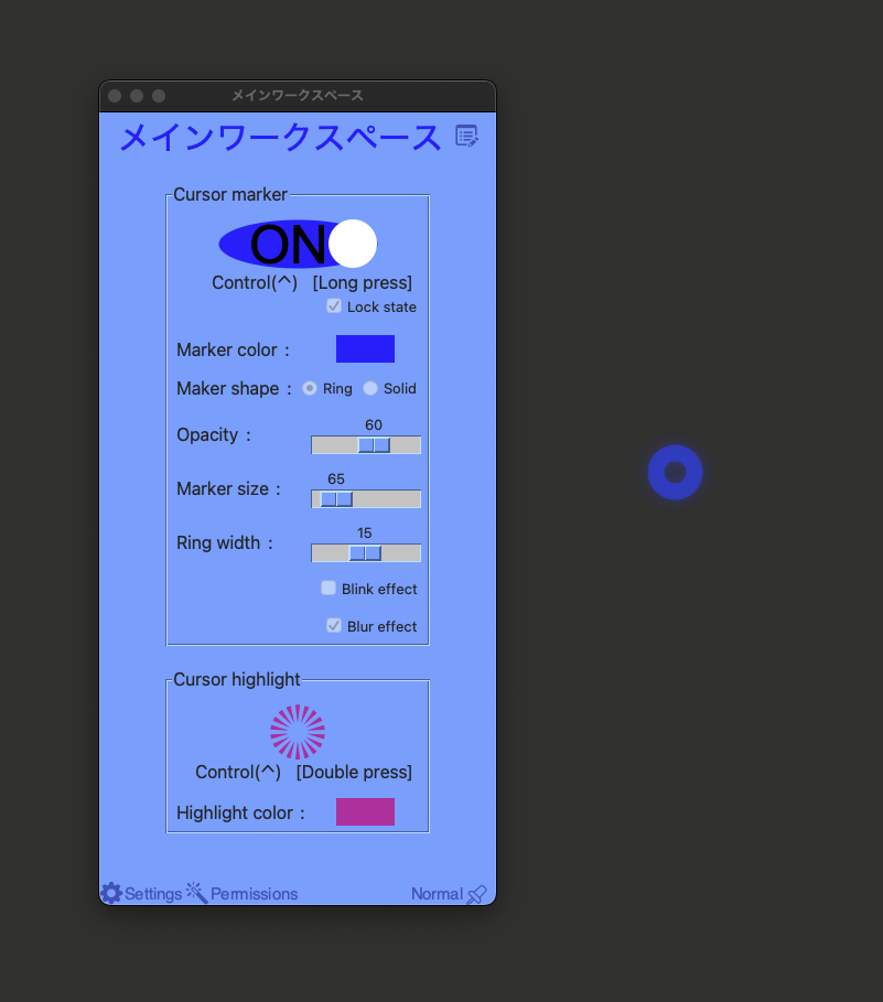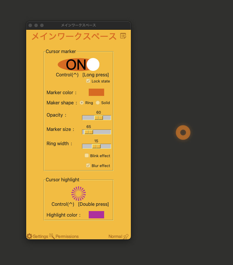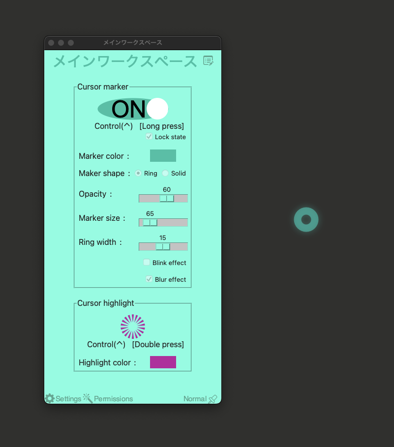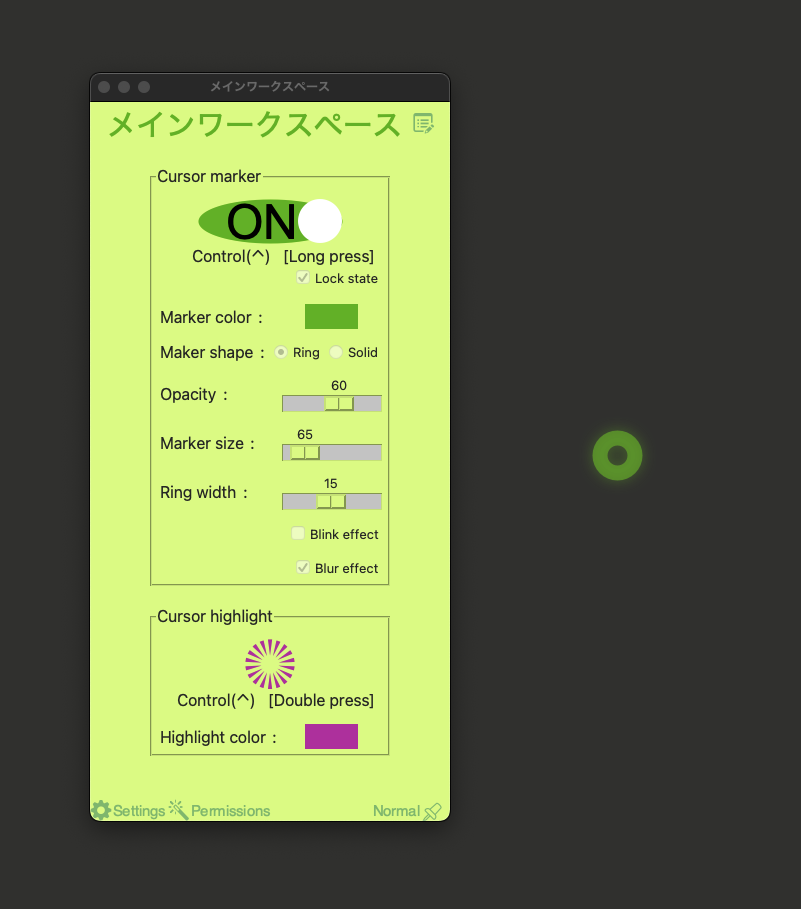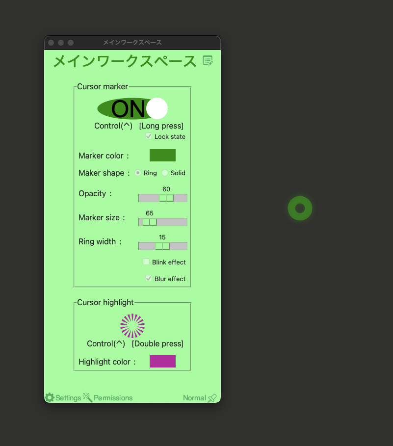 - Permanent marker around cursor (customizable color, size, and opacity)